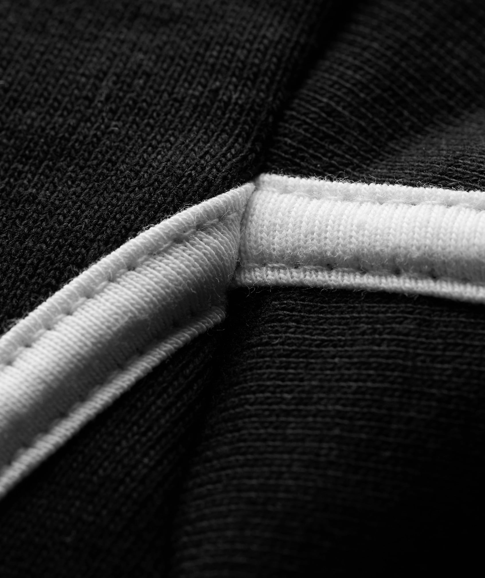 β’ Boorden zoom en manchetten van ribstof